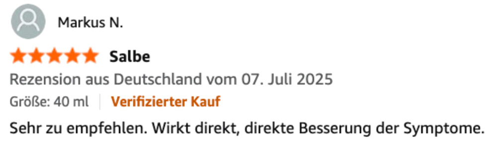 „Schon nach wenigen Tagen wurden die sichtbaren Hämorrhoiden deutlich kleiner. Ich war kurz vor einer OP – jetzt brauche ich sie zum Glück nicht mehr!“