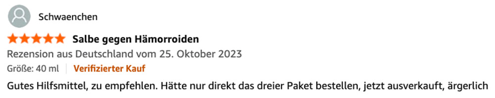 Denn Hemo Relief ist immer wieder ausverkauft – und es dauert meist 4–6 Wochen, bis es wieder lieferbar ist.